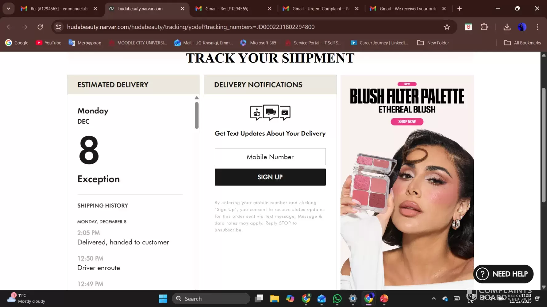 I am writing again regarding my order UK04004353, placed on 23 November 2025. Despite being marked as fulfilled on 2 December and later marked as delivered on 8 December, I have not received my package.