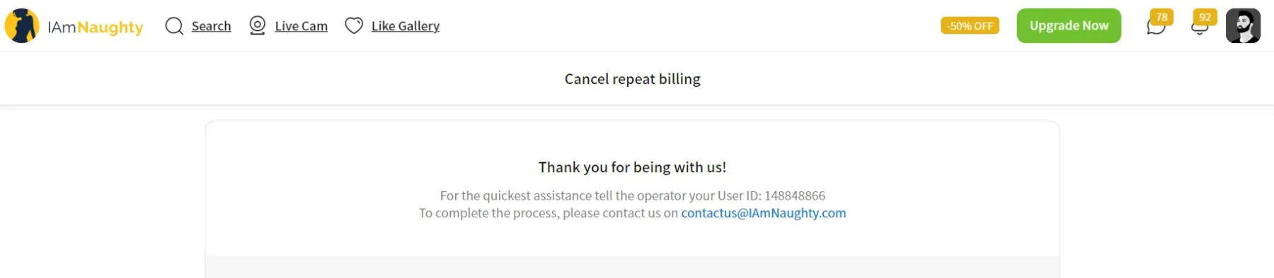 To complete the process, please contact us on contactus at IAmNaughty.com