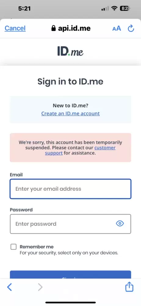 I have submitted probably six tickets in the past month that I cannot sign in on the ID me page. I wanted to see if I could sign into my account that I made a while back and it worked. When I went to sign in again, it said my account has been suspended. I have tried everything. I even tried creating a new account which just caused me more problems. The only way I can get into my account was troubleshooting the page and then sending the link to myself on my phone through a Chat app. If this is just a page where people complain , and there is no one to help me please let me know because I’m looking for support here on how to get this fixed .