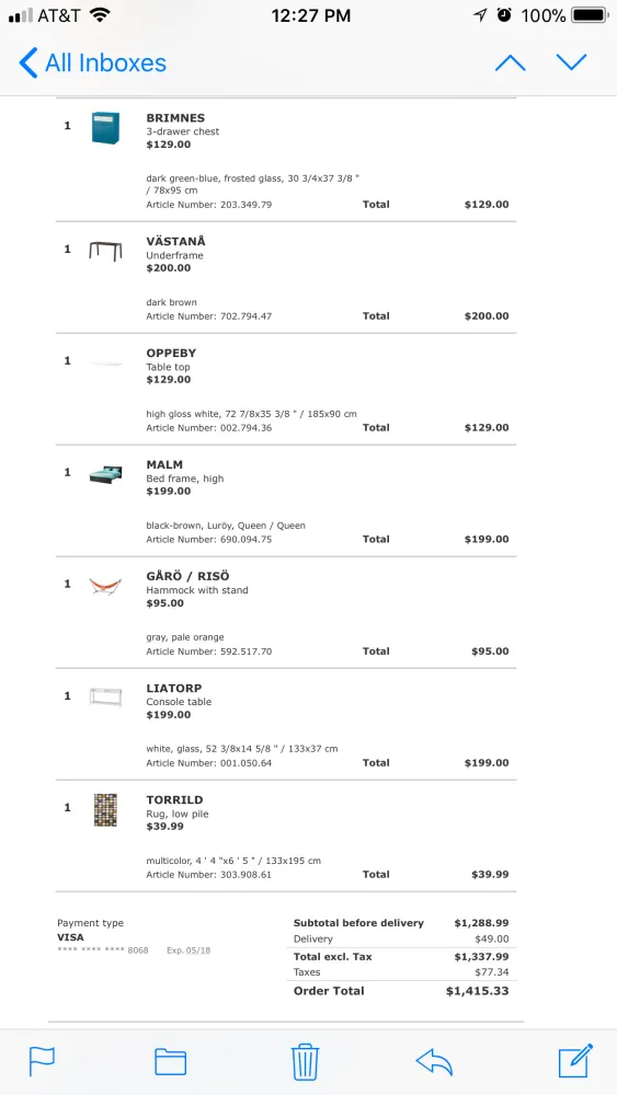 Some of the emails I have received from Ikea until finally I was informed that the items that were missing are no longer available and little refund gift card was mailed together for my trouble.