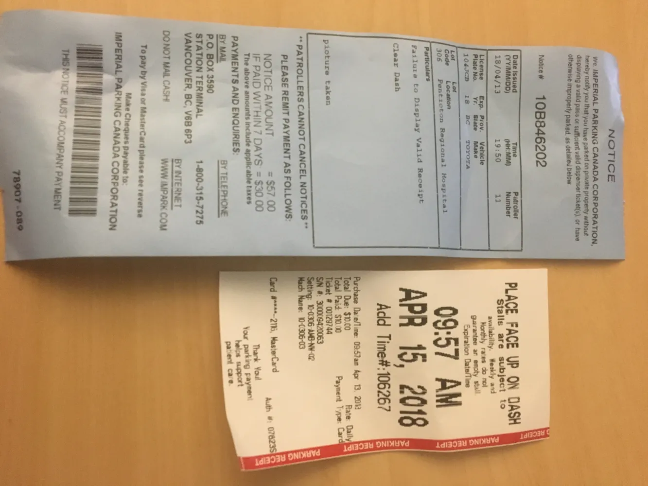We decided to park the vehicle by ourselves (instead of paying valet) but we parked in the wrong parking area. We didn't notice until the next morning when we saw the notice from impark placed in the front wind shield.