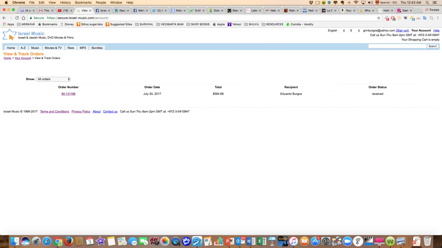 I purchased some CDs in Israel Music back in 2014. I went to the same, and it was very frustrating, I spent USD 200, but the CDs never arrived, sent multiple emails with no response. I was attended by a guy who took note of my order and my name; both times, it was the same person, but it was very difficult to rare that he took the call. On both occasions, he told me in his lousy English that my order was already being processed and shipped. Eventually, I got tired of calling and emailing, the charge went straight to my credit card, and I could never get my money back.