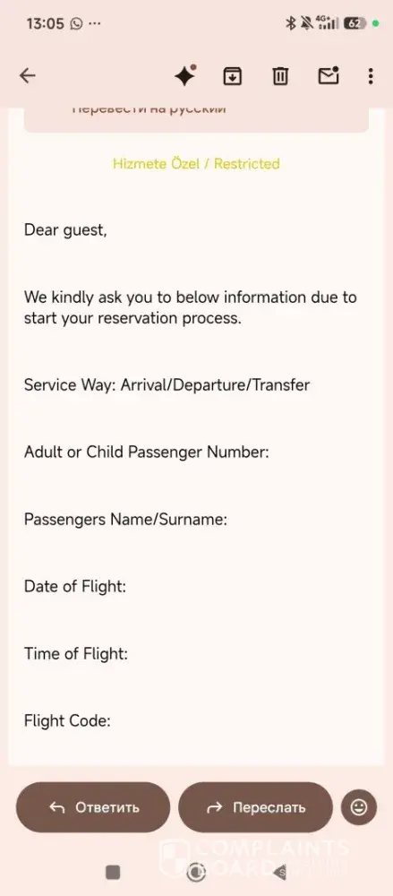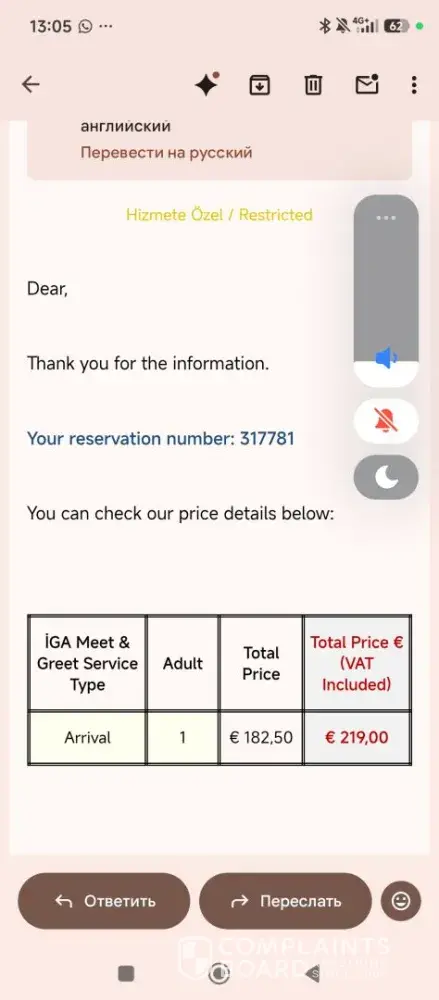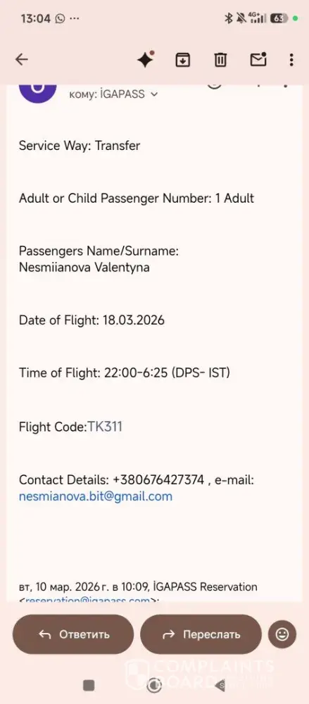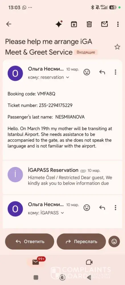 I am writing to file a formal complaint regarding the airport assistance service I ordered for my mother in Istanbul Airport. I contacted IGAPASS support and explained that my mother would be transiting through Istanbul on the 19th. All relevant information was provided in our correspondence, including her flight number from Bali and the arrival time in Istanbul.
