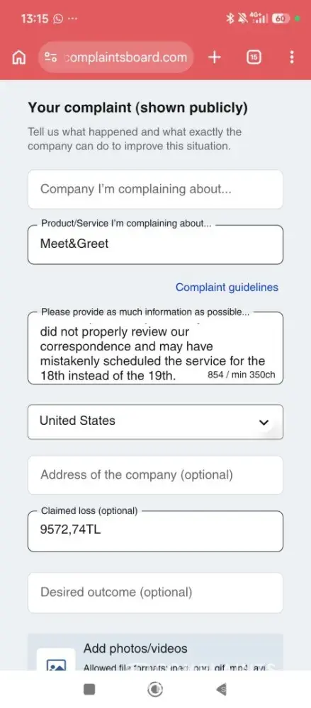 Despite this, upon arrival, no one met her. My mother does not speak the local language, and the situation was extremely stressful—we almost lost her in the airport. I suspect that your team did not properly review our correspondence and may have mistakenly scheduled the service for the 18th instead of the 19th.