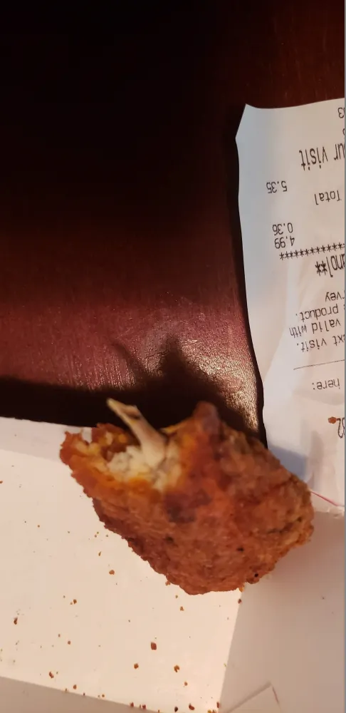 Today I ordered some Spicy Chicken strips at our local Jack in the box drive thru. I was shocked to find on one of them. I am only bring this to your attention because it is obviously dangerous! It actually inflicted pain on me due to the fact the bone got stuck between my teeth(Gap). I sure was not expecting any sharp, broken bones in a chicken strip and did not try to finish eating it. I tried to show what happened in