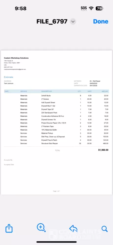 Desired outcome: pay me what i had to pay my contractor for the repairs to the damage they did!