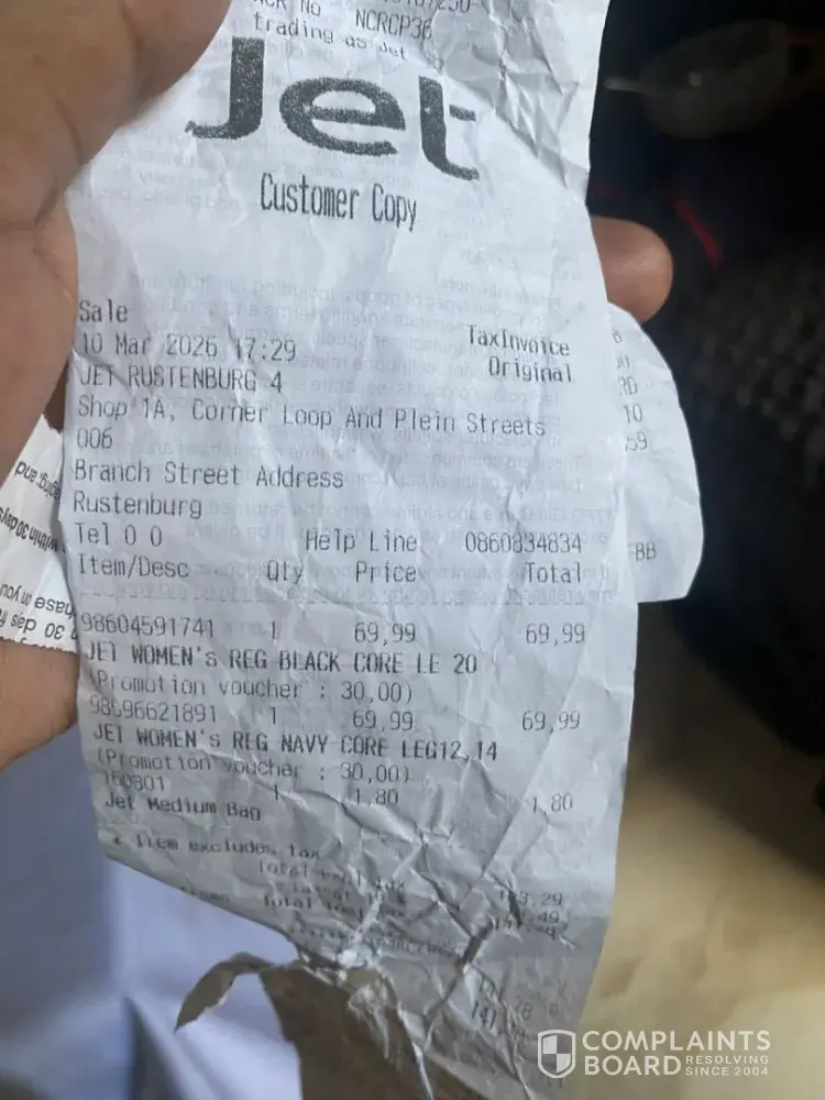 Jet Rustenburg review: Size exchange refused by store