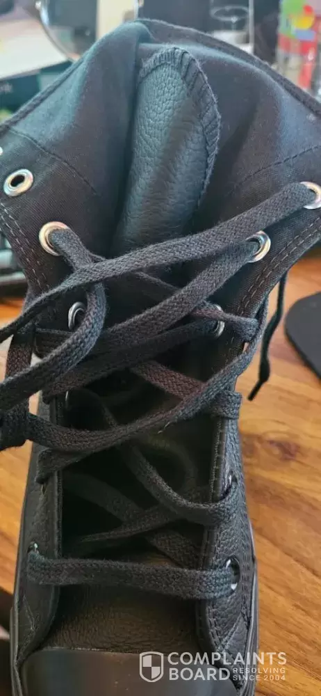 I purchased the new Converse Chucks Heel Lether Shoe via online. The shoe is not leather it is a very harsh cloth material in the inside of the shoe. It advertises as though it is a leather tennis heel. However, it is not that at all. I walked in these shoes to a concert venue. By the time I got home my right foot was blistered so bad I had to go to the...