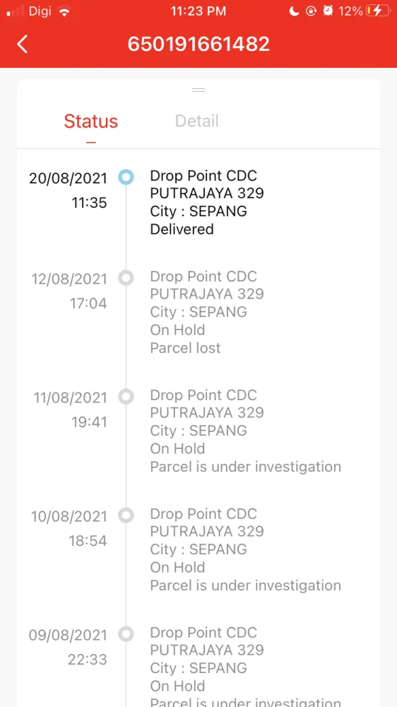 Hey j&t, my parcel was sent from jb to ipoh at 17/8/2021 and until today 28/8/2021 I did not recieved my parcel. My parcel are now at prk gateway 900 and has been scaned for outbound at 25/8/2021 but untill today still stuck there. Everyday I called your customer service hotline and their reason always the same which is there's been a problem at the gateway and klebang hub. What took you so long?! Taiping - ipoh took more than 3 days? Please fix your service and this will be my last time to use your service. Totally your service sucks. Before this I really love to use your service but this time you have exceed my limits. I already told to your customer service hotline that my parcel is urgent and seems like they didn't bother about it! I need my parcel to be arrived quick!