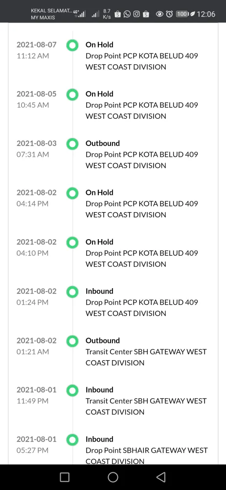 I would like to express my disappointment regarding your services. For your info, I have couriered my parcel with WB no [protected] on 19/7/2021 and reached Labuan on 24/7/2021. Since then, no movement and receiver (Client) urgently need that parcel to execute their job.
