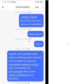 I would like to complain about the delivery man Estrella, Ursolo A:[protected]. When I saw his name at the Track your shipment page, I immediately texted him. I even ask him to reply asap but he did not reply. I texted him 5/30/20 01:32pm. I waited for his reply but nothing. Then when I wake up this morning 5/31/20 I checked Shoppe and it says 05/30/2020 06:03