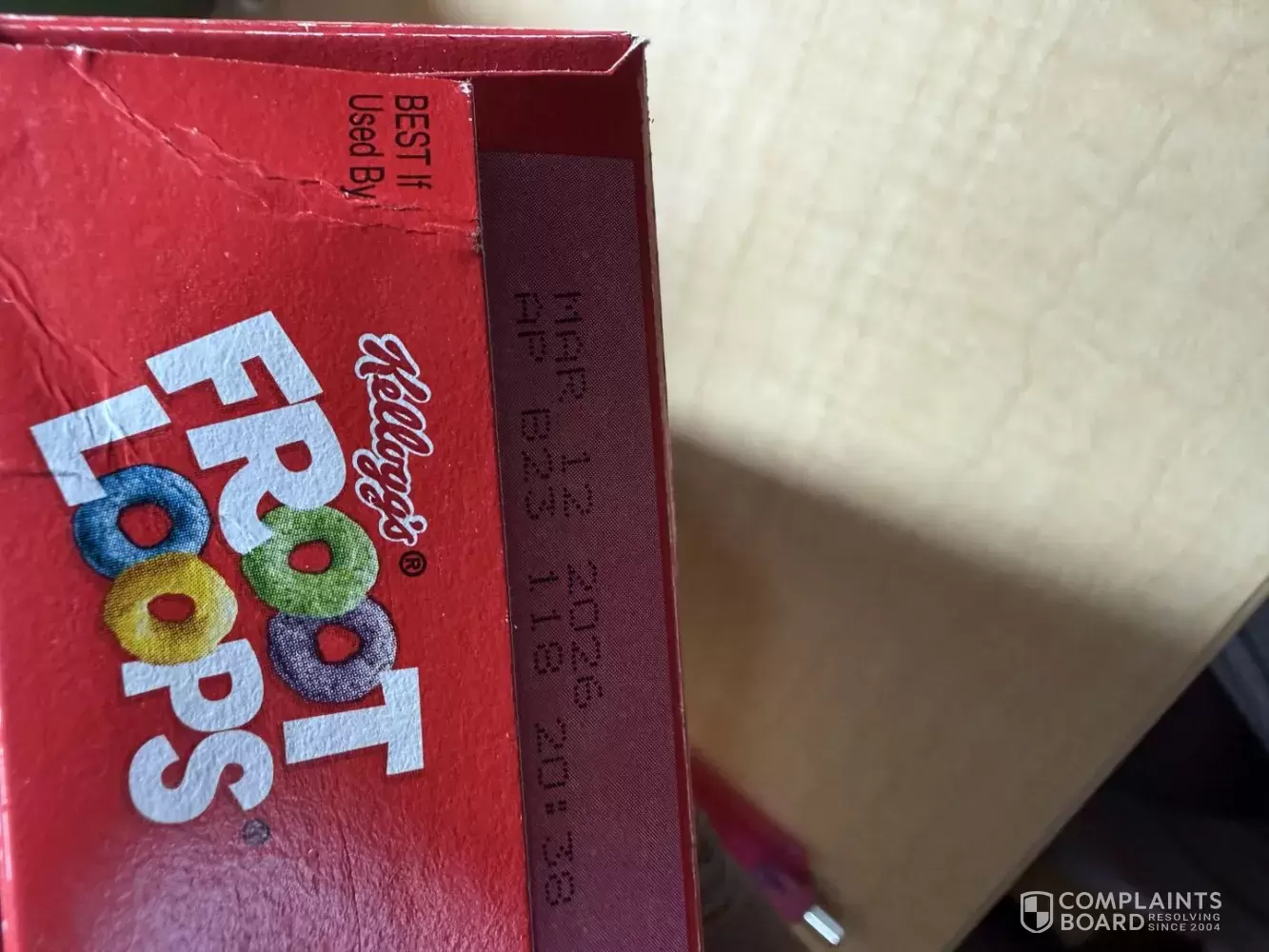 I bought a fruit loops from one of my local supermarkets last week. It contained both dead and live burgundy bugs. I was eating the cereal when I found the first one. Then I saw multiple after that. I removed two and inspected them. One started to move. This package is to expire Mar 12 2026. The batch code is AP B23 118 20:38. Attached is my evidence for my complaint.