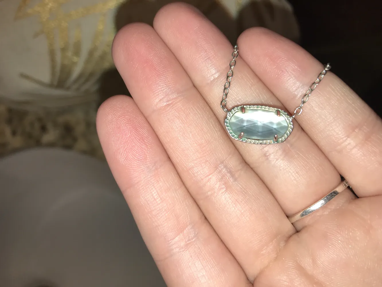 I just recently got my Kendra Scott necklace in January! As a Christmas gift and the silver is already tarnished! If it was true sterling silver it wouldn't have tarnished like this and I am very disappointed. I take very good care of my jewelry but this is ridiculous. It's only the beginning of March. Not even 3 months! A lot of money was spent on this and I expect it to be of the upmost quality, or at least better quality than something bought at Walmart