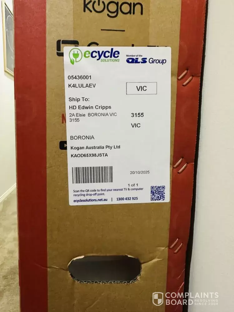 K4LULAEV Purchase Order, You failed to provide an Invoice nor details of insurance, I have tried to call Kogan for the details and no responses, I have emailed also no Responses, Trying to contact Kogan Is Impossible to get results or return responses. You leave me no options but to contact ACCC to lodge a complaint against Kogan Australia. The order explains the complaint in its full capacity when read in conjunction with the complaint. Kogan are also avoiding Taxation liability’s that they will also be reported on to the ATO.