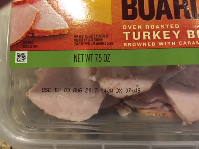 Bought a Turkey and American cracker Lunchables 2 days ago for my son and in the rush of things at the store did not realize there was some sort of goo on the meat. When I opened it for my son I realized what I had missed while purchasing it, I want to say its cheese sauce but am not completely sure and did not feed it to my child.in total I purchased 5 of this kind and only had one with this issue.