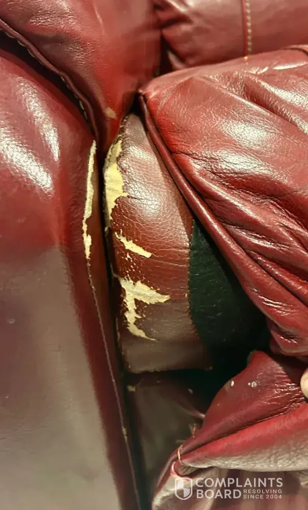 March 2026, I sent photos of the peeling love seat and both recliners to Corporate President & Melinda D. Whittington in Monroe, MI. No reply. They just don't care and have no shame.