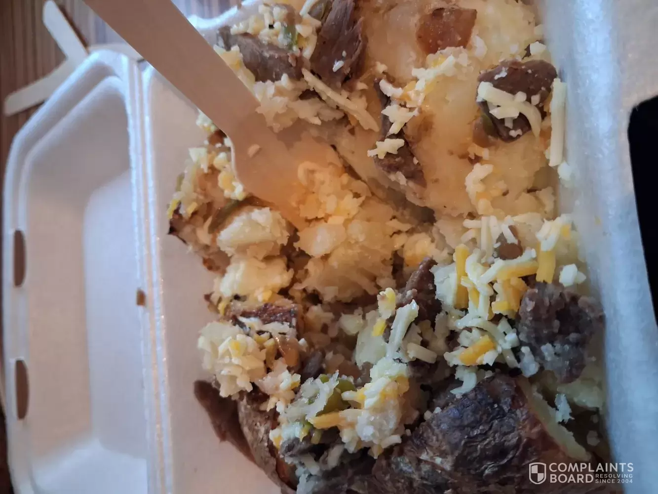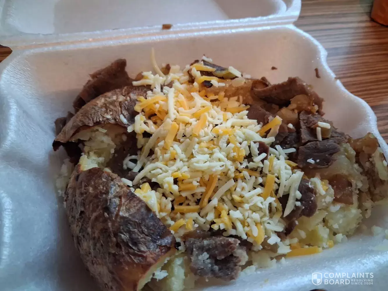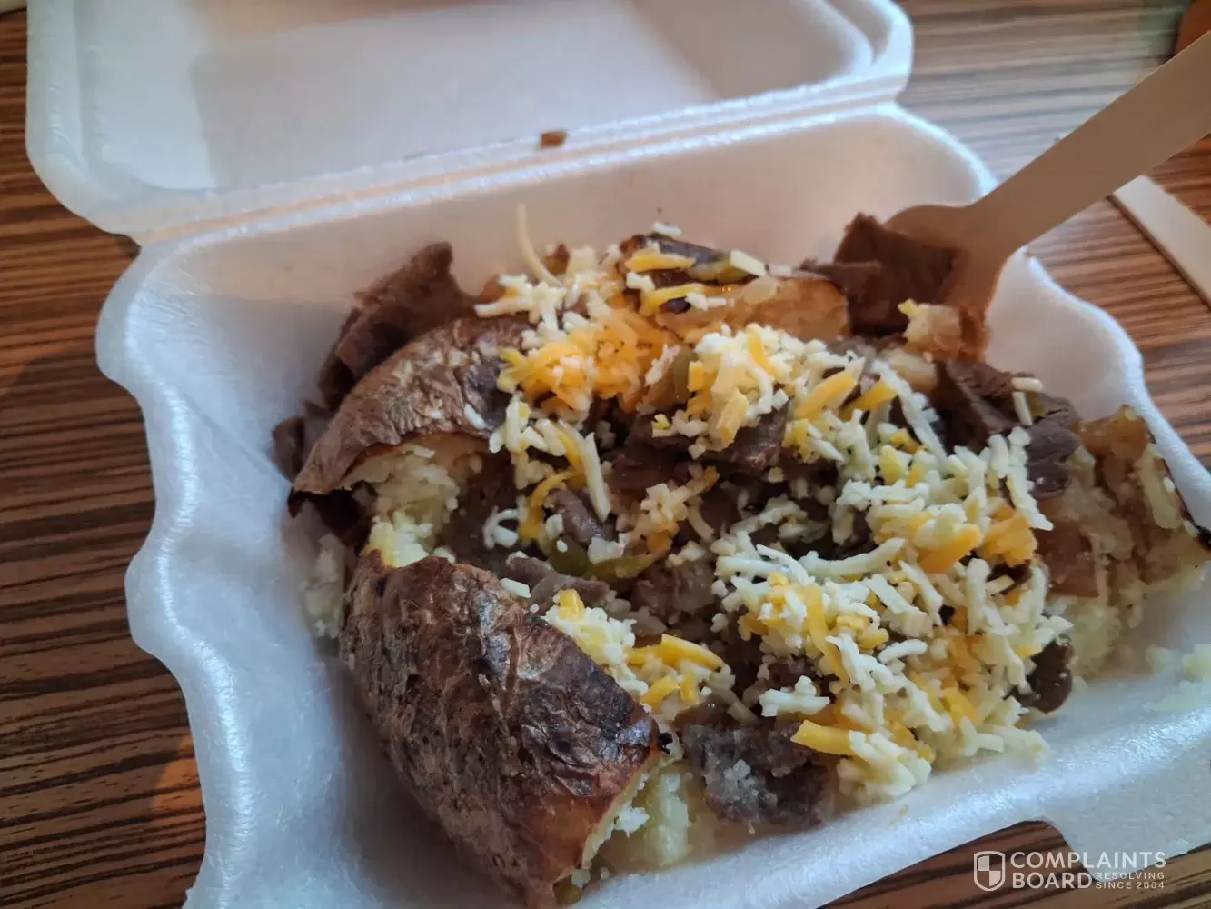 Terrible experience from start to finish. Screens used to place order are frustrating, guy said they were slow, dial up Internet was quicker 30 years ago. Ordered a cheese steak spud. It came with no butter and no cheese. When I took it back he told me the butter is in the cheese and had melted. I said there was no cheese on it. He put a a tiny amount if cheese on it. Photos are of the potatoe after he added the cheese. Looked nothing like the photo, dry and tasteless. Save your money and go elsewhere. He needs done training from @spudman.