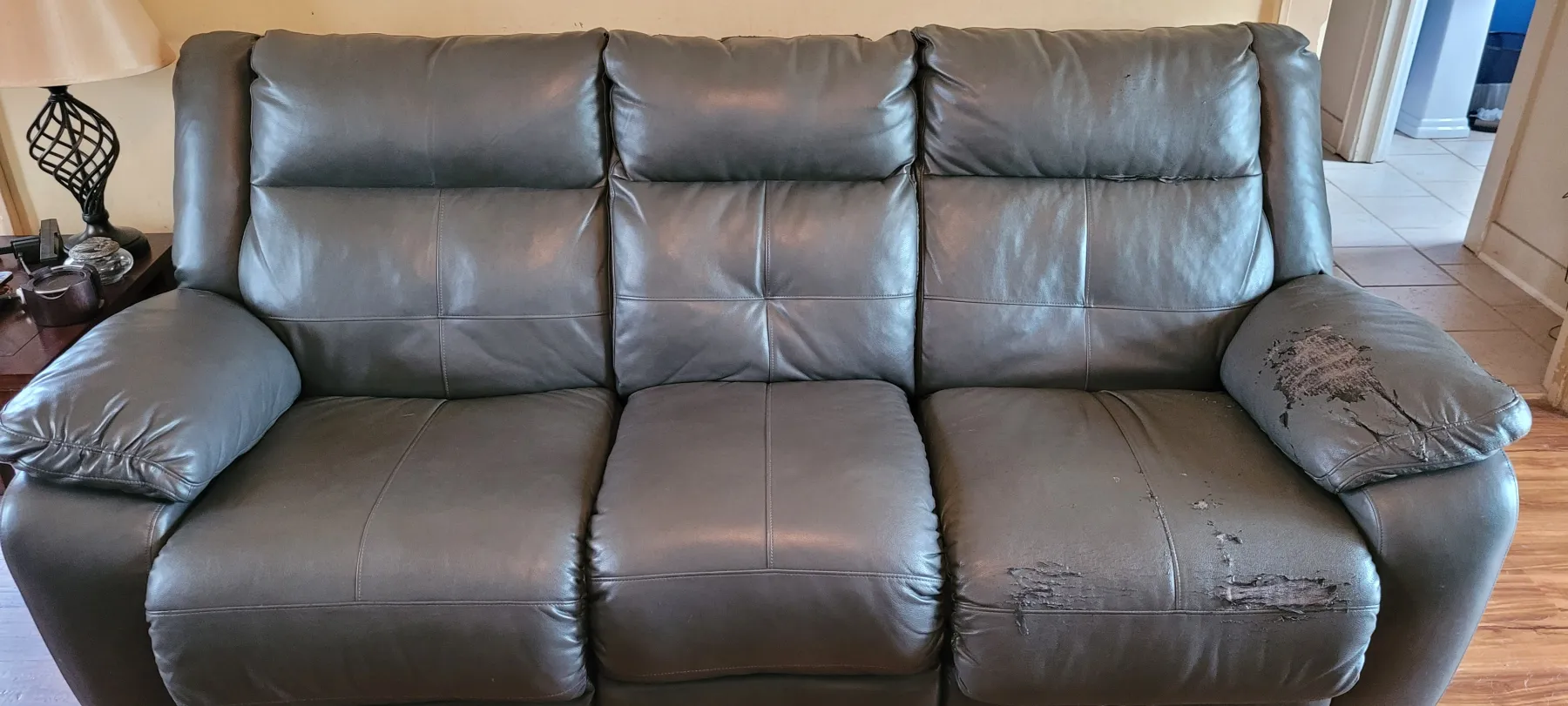Hi My Name is Juvy Villamar and I'm writing because we bought are furniture at sears last April 29, 2017. Sears told us that they can't do anything since the manufacturer warranty is over. So I just want to show it to you that our couch is barely use it and now it's starting to peeling off and it's really ugly and we are so dissappointed because we paid $1600 and it's only last for 2 years I know some people can easily buy a new one but the purpose of buying an expensive one is to last at least 5 to 7 years not 2 years. I hope you can able to do something with our couch.