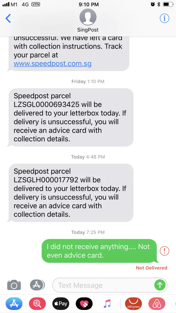 I received an sms today from sg speedpost that the Samsung S8 is to be delivered to my mailbox. But when I came back from work today, I checked my mail box to find that is nothing there. When checked the tracking, it says that it is delivered. This not the first time. The suppose mail man must have helped himself to my good again. This is not acceptable and I will not fall victim again. Neither will I pay for this. I demand a refund. Kindly refund me my $204. Thank you.