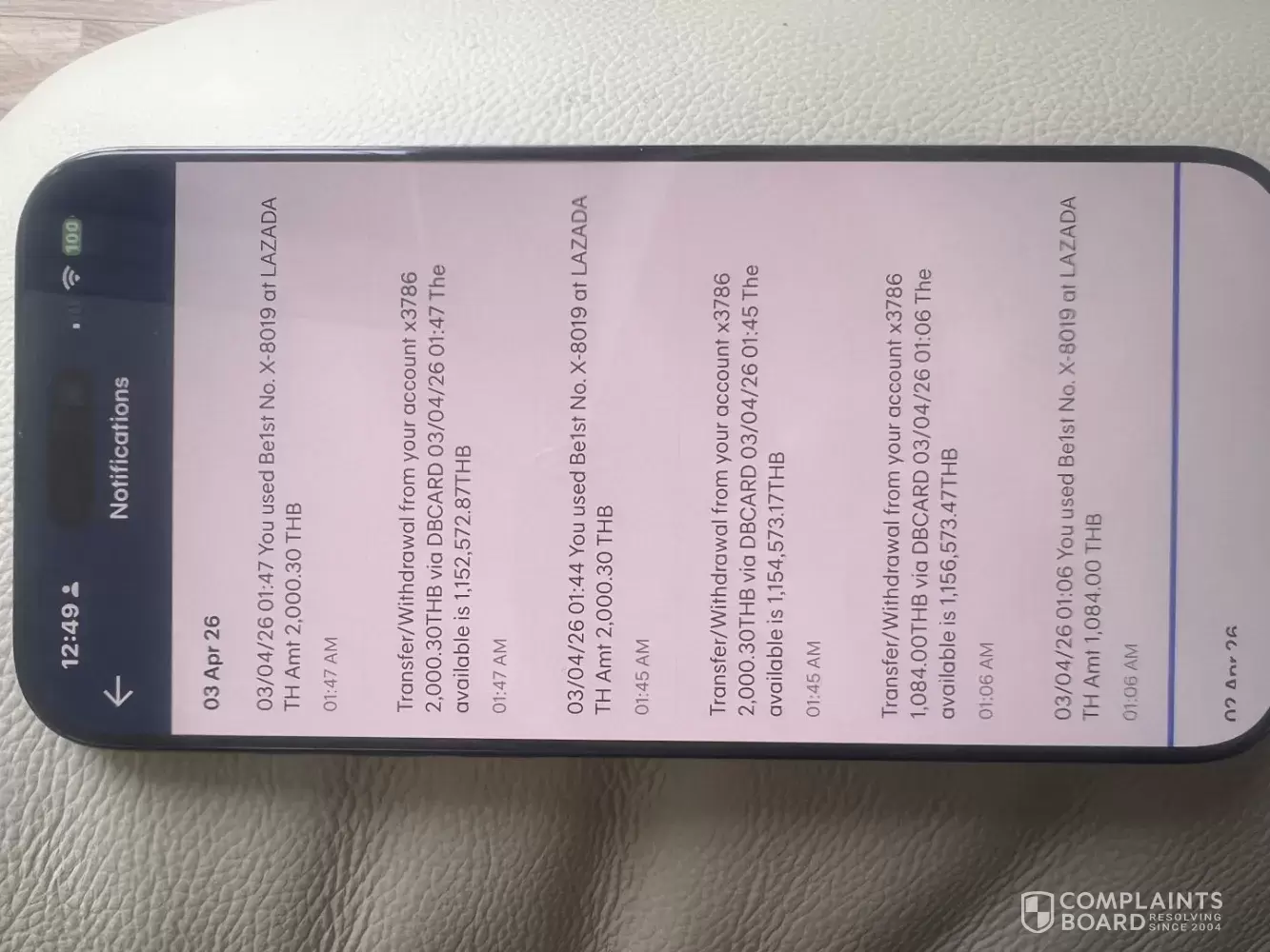 ∙ Bank notification log showing two Lazada TH charges 3 minutes apart