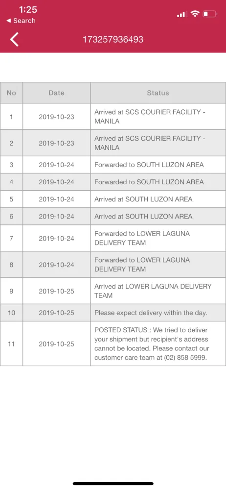 Here's what happened, the package I was trying to pick up was sent on 10/17/19. I went to your SM branch on 10/18/19 but I was advised package was not received yet.