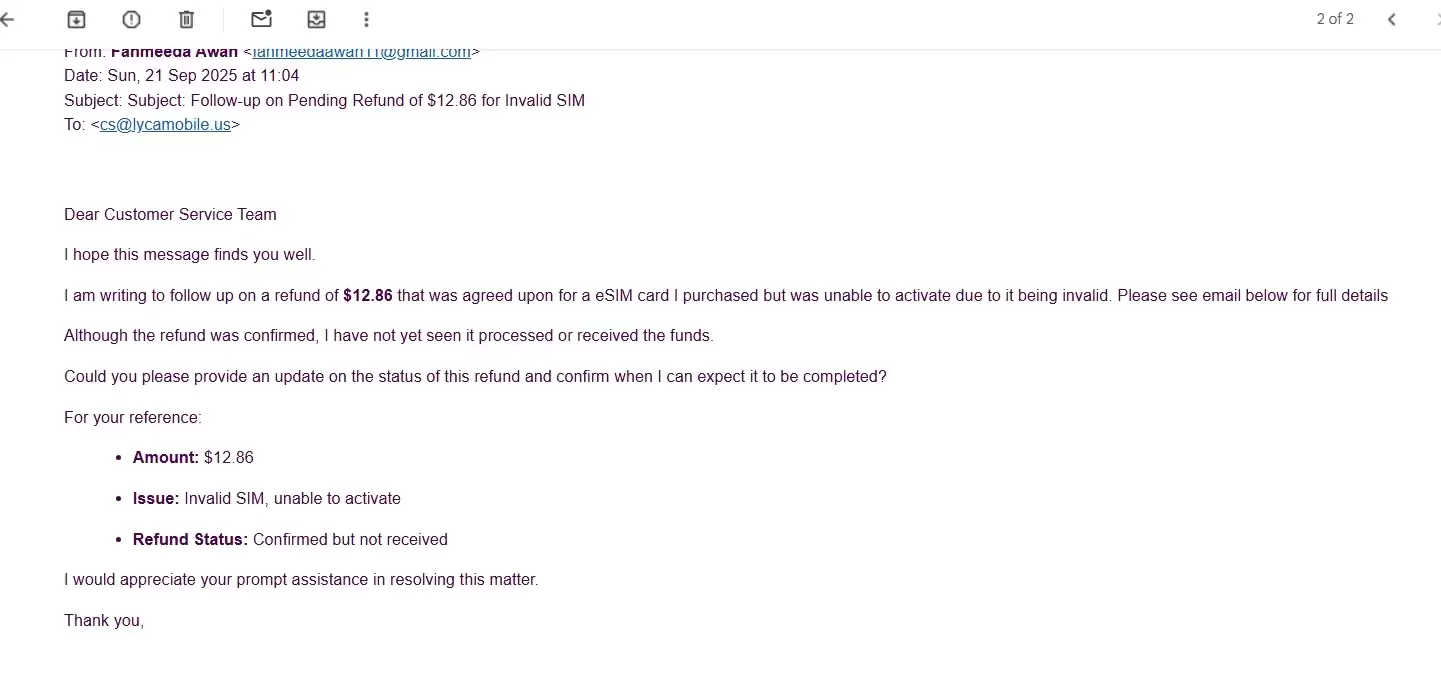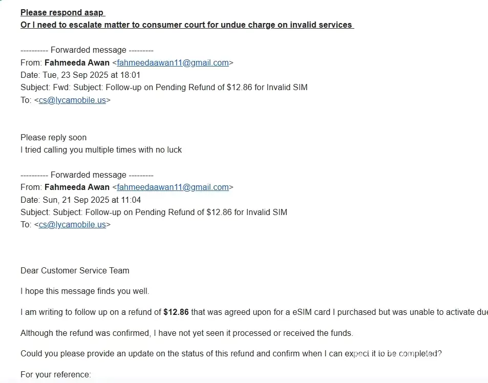 This kind of customer service is unacceptable. They’ve wasted both my time and money, and I’m left with no resolution and no way to get help. If you’re thinking about using Lyca Mobile, don’t. Save yourself the frustration. I am going to file a complaint against them