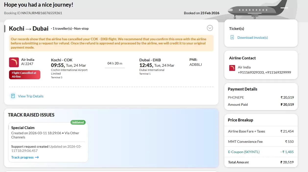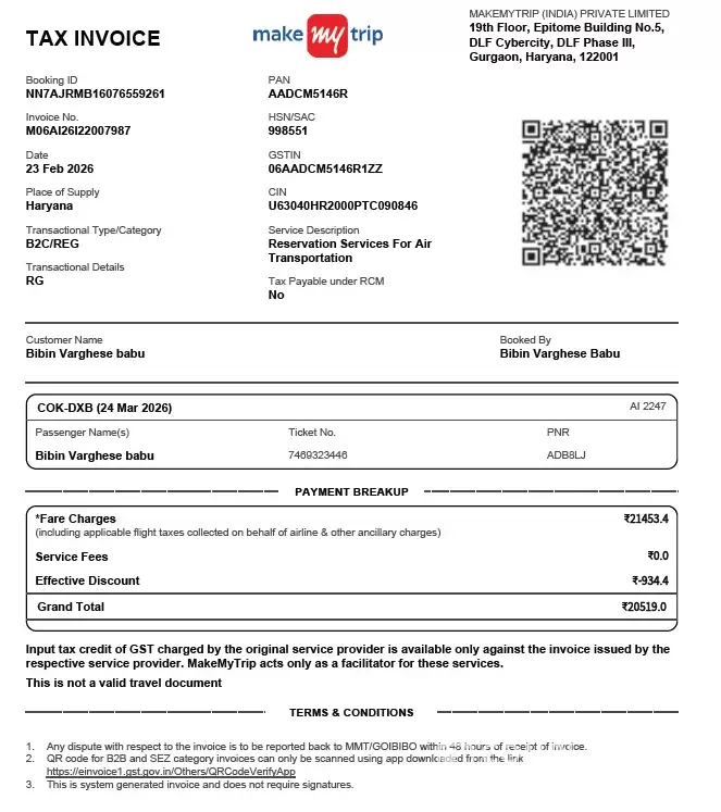 Dear MakeMyTrip Support Team,