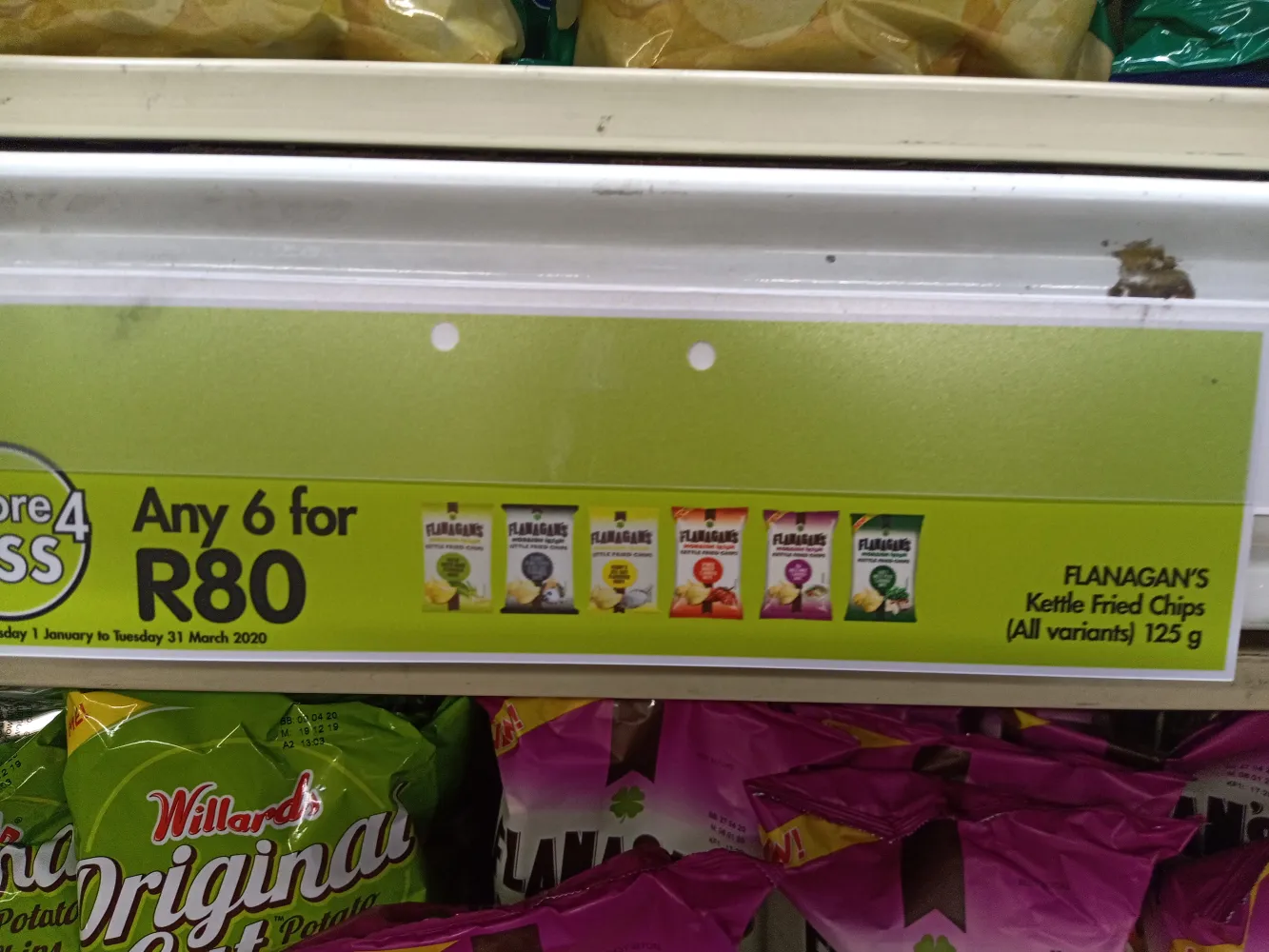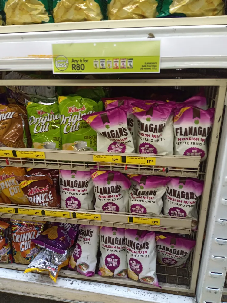 19/01/2020. Went to The Makro store in Milnerton as I saw they had advertised Flanagans for R80 for 6 packets. And a mix of flavours but when I get there they only had one flavour. I came there especially to get them for my restaurant. As we supply them to our clients. Now I was forced to buy one flavour and one that's not popular. Do the buyers not buy...