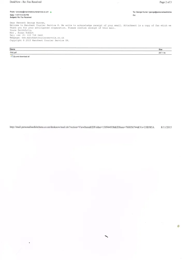They are saying that I have to pay to them a Customs Duty Fee of 1, 915.00 Great British Pounds Sterling. Ref tax number UK-0013117 Dated 6/Nov 2015 At the top it says that the Home Office is 4th Floor West New Kings Beam House 22 Upper Ground London SE 1 9PJ UK. At the bottom there is a stamp Mr Martins Staples for the British Inland Revenue Glasgow. The parcel in question is held in London, Being a Bank Draft for funds gifted to me. I suspect fraudulent activity. Can you check number and advise me asap Best Regards British subject in New Zealand Kenneth George Hurren. 55, Reikorangi Rd, RD.1. Waikanae Wellington 5391 More information available on request [protected]@personalisedkitchens.co.nz