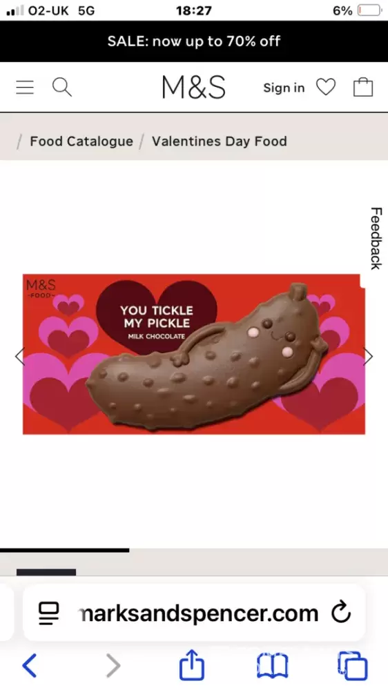 my I am writing to you with concerns regarding a Marks & Spencer’s chocolate Valentine’s present that I feel in this day and age with young children seeing this sort of thing and with lots of sexual abuse going on I don’t think they should be allowed to sell it.