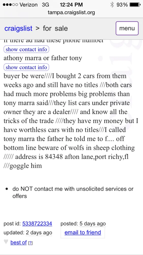 Read full complaint and 5 commentsIs Marra Motorcars Legit?