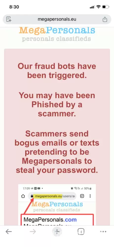 So today Friday October 24, 2025 at around 4pm I go to bump on megapersonal which I have pinned and favorite on my browser so I dont have to login and out and I see fraud bot but I dont understand why? I never posted ANYONE anyone but myself I never login Bcus of course it’s pinned. I have 3 little ones I need to feed and care for. Im a single mom. This site means everything to me I would never do anything to jeopardize my account! please help me I'm not sure why this is happening to me.