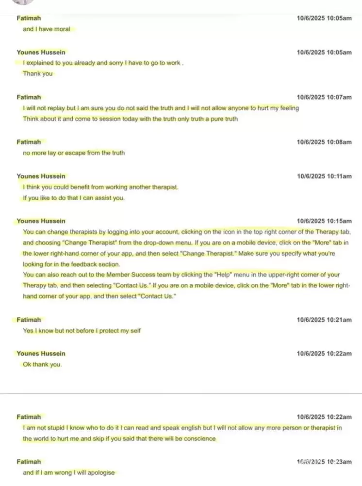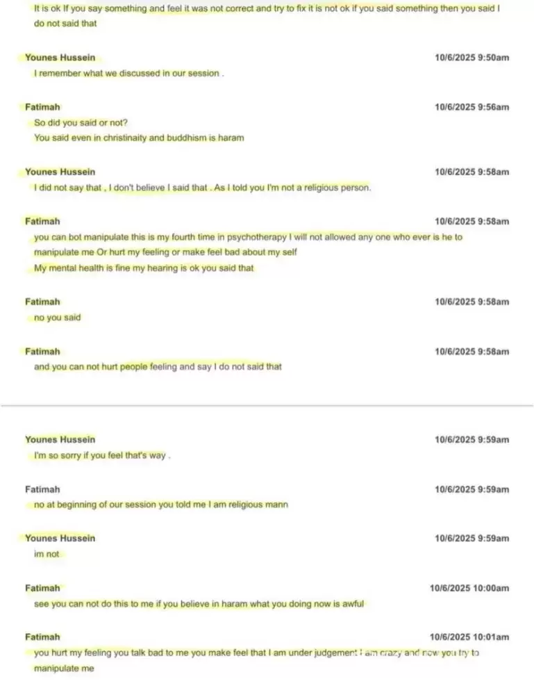Younes Hussein committed multiple ethical violations during my therapy, including imposing decisions on me, repeated delays and absences, discussing other clients’ confidential information, giving me religious judgments, and abruptly ending the therapy relationship after a conflict. He works internationally on global platforms thanks to BACP registration...