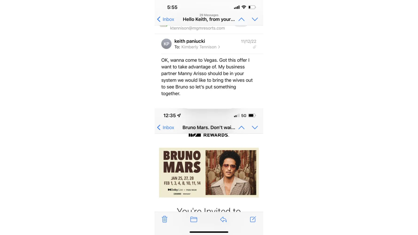 Sent offer for Bruno Mars tickets on Nov 9th sent email to Kimberly Tennison of the 12th that I would like to take MGM up on the offer and book me a trip. On Nov 22 she sent me a email with my confirmation #. I asked her to check and see if she could get me 4 tickets and if she couldn't I'll buy the other 2 I just wanted 4 together because another couple was coming with us all traveling from Florida. She mentioned having to check with the hotel and would let me know. This past Friday I was informed not only was she able to get the extra 2 tickets, she couldn't even get me my tickets so I have NO tickets. I've booked my airlines and our stay at Aria and now we are looking at cancelling the trip and are more disappointed than you could ever imagine. I was a platinum rewards client before covid and recently started to book trips back to the Beau Rivage since its your closest property to Florida. My member # is [protected]. I'm just having a difficult time understanding what happened here as I know nothing was dropped on my end. I contacted 3 days after receiving the offer and have a confirmation # booked all the way back in November. I'm a person of principle and I can Guarantee you that this will certainly effect where I decide to gamble going forward. She offered a $300 resort credir which doesn't even buy 1 ticket on Ticketmaster so that was really a slap in the face. Attached is copies of the email string.