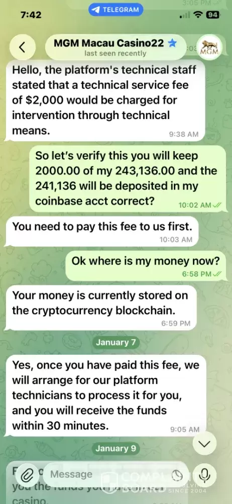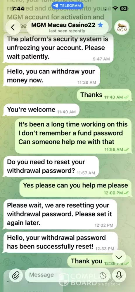 I have 247,000 in my MGM Macau acct I asked to have it transferred to me followed MGM instructions and never received my funds the attached screen shots show all the details of the interactions with mgm Macau those details should be sufficient for MGM Macau to understand and respond to the issue at hand I wish to recover the 247,000 in my account soon