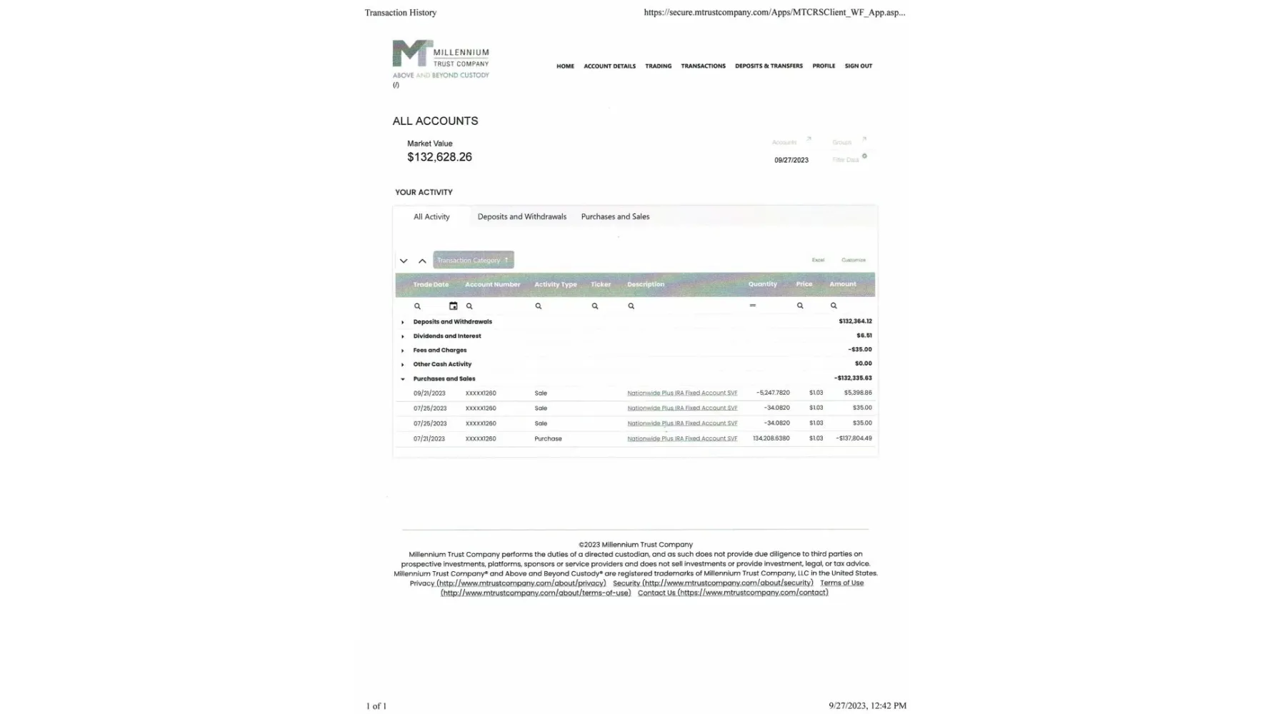 My account was purchased by Millennium from my prior management company, and I have been less than satisfied with their performance. They apparently have 2 different web sites (very confusing). Finally got access set up to the better of the two which took way too long. They lost half of a dividend (this was an ACH transfer, so how do you just lose a couple of thousand dollars?) and it took many hours on my part to finally get it resolved. Now it is happening again (the payment was sent via ACH transfer and it has gone missing). Very frustrating since it is hard to reinvest funds that have not been posted to my account. I have my wife's self managed IRA at a different place which has been much better to deal with and will be moving mine over as soon as I can. The painful part is that Millennium will charge me a lot of fees to shut everything down and transfer to a more competent service provider. Very frustrating performance and poor customer service.