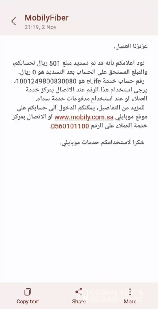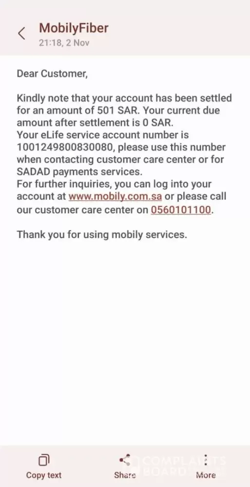 After 10 days, I personally visited the Mobily office in Jubail to reconfirm the status. The Mobily representative confirmed that: