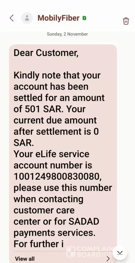 Approximately two months ago, I officially requested the cancellation of this service through Mobily customer care and the Mobily office. As instructed, I paid an amount of SAR 501, after which my outstanding balance was cleared and made zero.