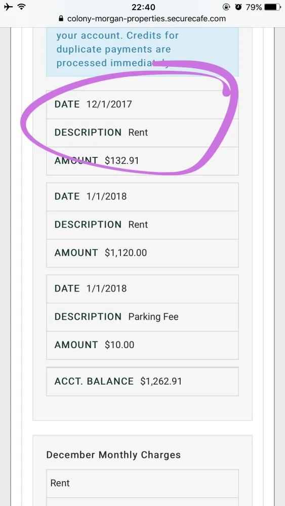 Pay the rent, the company put a hold on my payment account and did not inform me that I would have to bring in a money order after charging me 4 late fees in 2 months and refusing to refund the money. I have payed my rent on time every month since living here. After paying off the complete balance of rent they added a charge for 132.91 and I have no idea where this fee came from. After multiple calls and attempts to fix the issue I have not heard back from the property manager or any other people in the office. I would like to know whether I am being scammed out of money because I'm