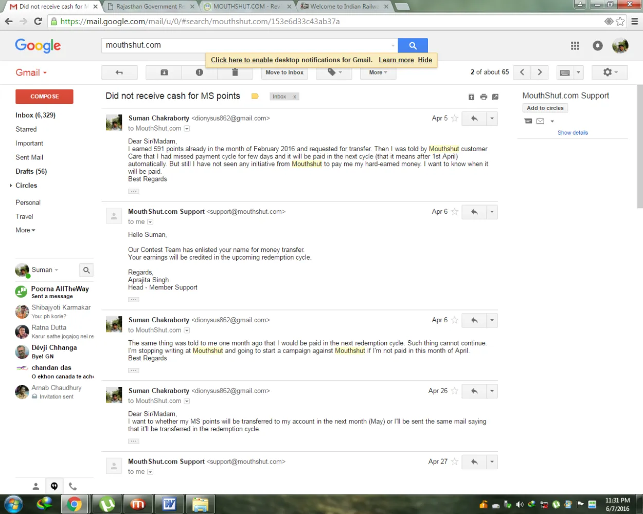 I wrote a same review in mouthshut.com against them one month ago revealing their hypocrisy and deceptive attitude. No slang or obscene word was used. As review revealed the truth regarding this "share and win" contest, they deleted it within one day. I asked the reason but they did not respond. So i'm writing it again to reveal the truth to every one. I know this may be deleted again. They encourage others to write negative reviews but cannot tolerate it in their own case. However, i'm going to narrate my experience with them from the first: i’ll not say that they don’t pay but they don’t like to pay. They will leave no stone unturned to prevent the payment. During the december of 2016, I completed 500 ms points and requested for fund transfer. But then I found my points gradually decreasing. They said that they had cut down points for irrelevant comments. They cut down nearly 200 points. But all my comments can never be irrelevant. Then I stopped making comments. Then the targeted my points earned through rating. But what reason they’ll show for it. I began to keep watch on my earned points and check when the points are decreasing. After this all these stopped. They finally paid me in februrary 2016. Then I again earned over 500 points within the last week of february 2016. But since then they did no pay money. I asked a number of times when they’ll pay me. Sometimes they did not respond and sometimes made false promises that i’ll paid in the next redemption cycle. From february to june they only made false promises but did not pay me. I’m attaching the screenshot of email conversation with them. Now it is up to how you’ll rate them. Don't forget to see the screenshots of my email conversations with mouthshut in the attached photos.