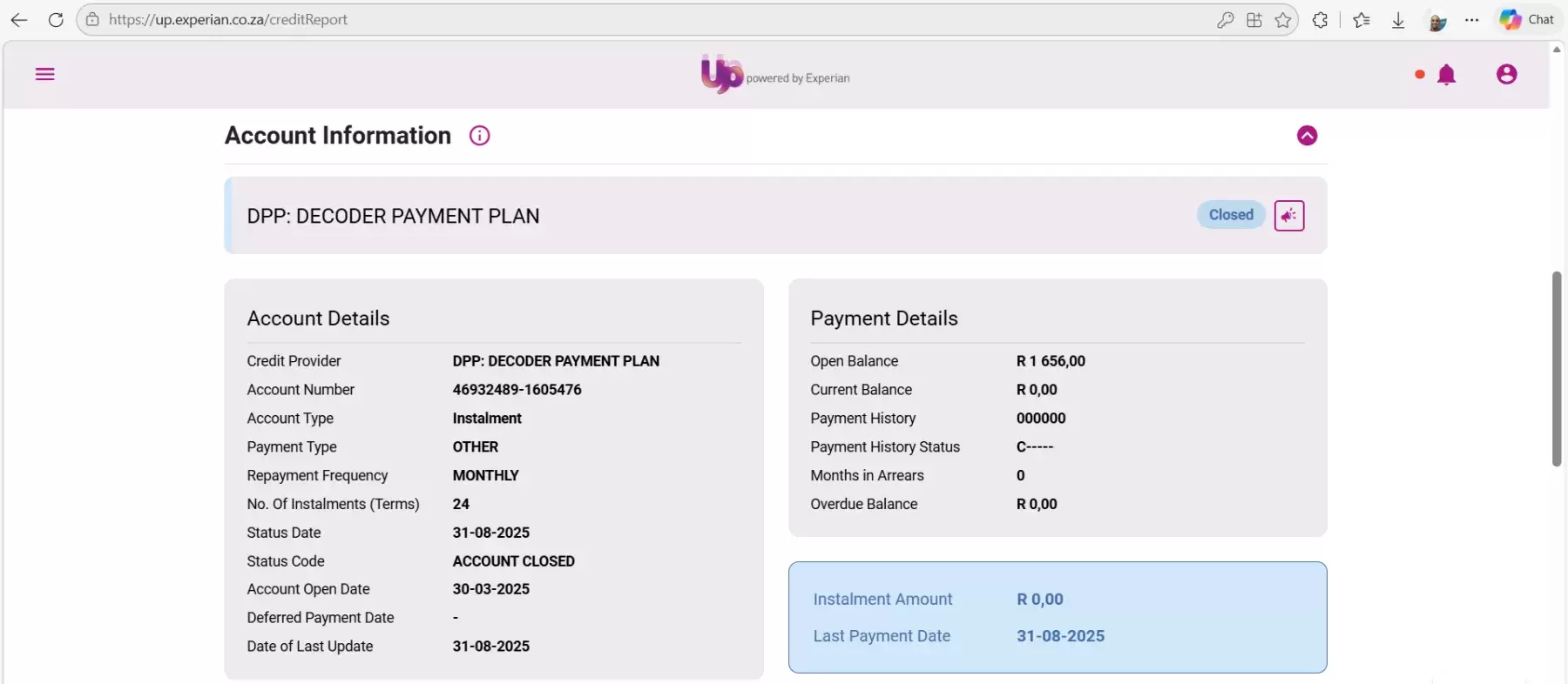 I therefore request that DStv urgently instruct TransUnion, Experian, and XDS to remove this listing from my credit profile with immediate effect. Kindly also provide me with written confirmation once the removal instruction has been submitted to the respective credit bureaus.