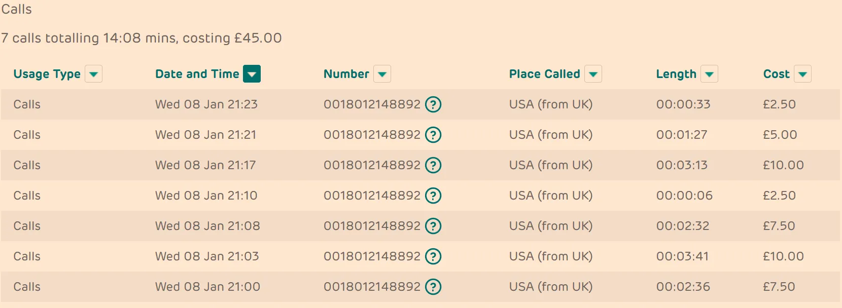 The 2nd picture is to prove that I did indeed try to contact them and navigate their horrendous automated service multiple times and incurred the charges shown.