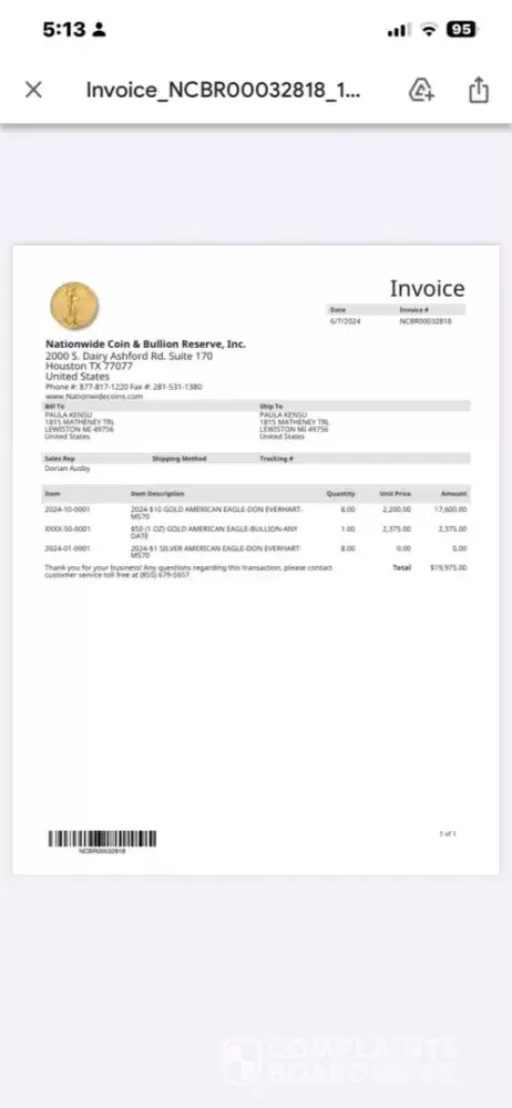 Nationwide Coins reviews first appeared on Complaints Board on Nov 7, 2025.