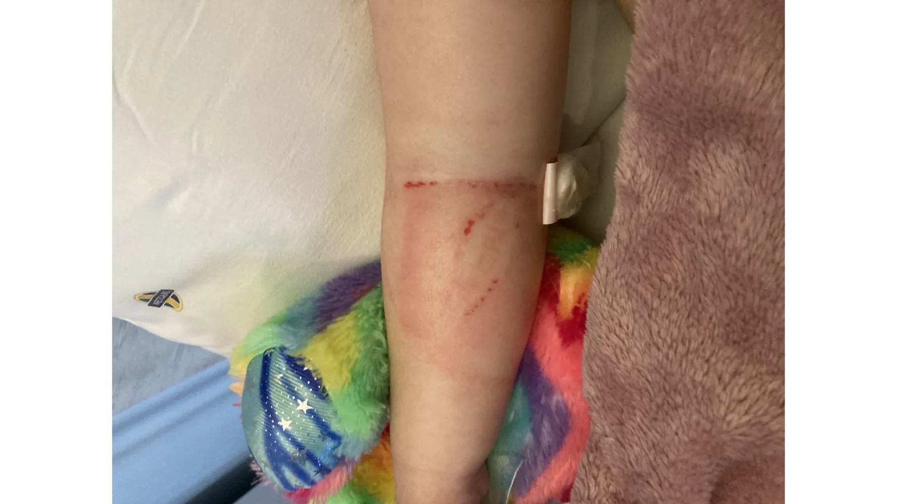 The nurses from the ward fail to check this haywire drip resulting in it going into the arm tissue. My baby's arm is so swollen and sore to the touch. The drip is removed after I complain and the plaster rips off the skin of her arm.