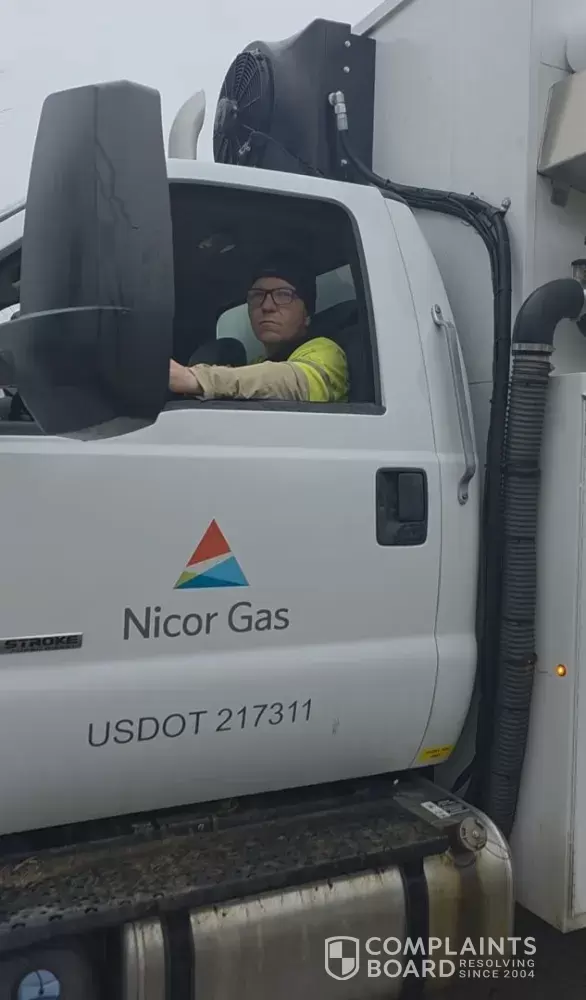 On March 5th, 2026 at approximately 9:00 am at the intersection of Madison Ave and Van Buren Ave in St. Charles, IL, a driver of a Nicor Gas truck pulling a trailer with heavy equipment was blocking the only street entrance to get to my driveway on Van Buren Ave. After being unable to turn onto my street, I reversed my vehicle across the street on the other side of Madison Ave. I parked on the right side of the street to leave room for the Nicor driver to maneuver around. After waiting at least 5 minutes the driver finally reversed next to me and while speaking with another Nicor employee I overheard him complaining about me, asking why my "Fbomb" problem was and that I was an "A**hole". I informed the driver I was just trying to get to my house and he was blocking the only way into it. I don't appreciate the inconvenience but I was understanding until I got called out of my name with vulgar language.
