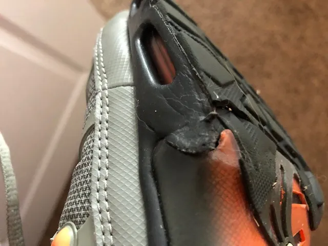 I am disappointed that I spent $100 on a pair of shoes that have such a glaring fault. Also, the shoe is very hot to wear, no way to vent.
