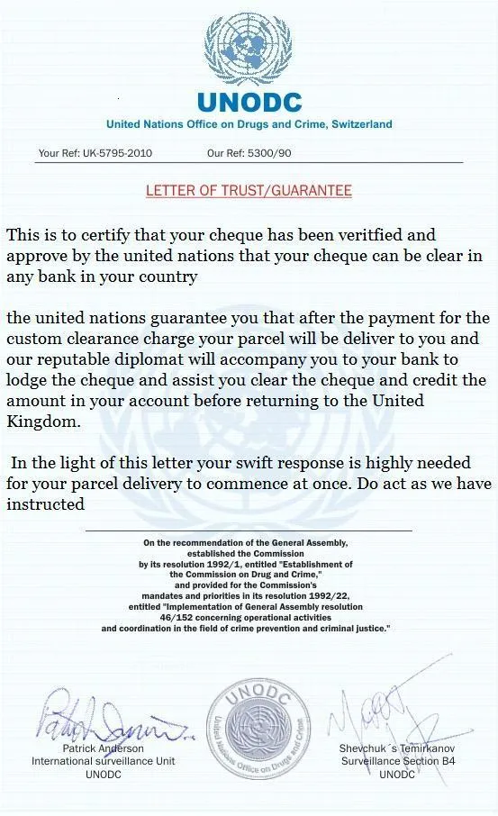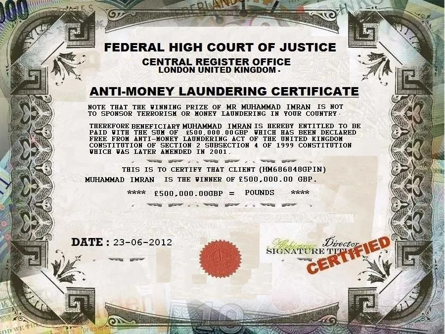 i m sending attach documents, these were sent to me by british high commision to claim for my winning prize of 500.000 pound by paying 650 pounds to them, i said that i can not pay, they send me ist guarantee card, and now today disclaimer form, plz kindly that