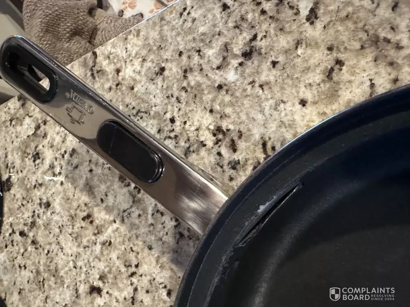 After three years of use, the pan’s non stick surface is lifting by the handle. Of course, I can no longer use the pan. The pan has only been hand washed with dish soap and only silicone or wood have been used as cooking utensils. This has been a favorite pan.