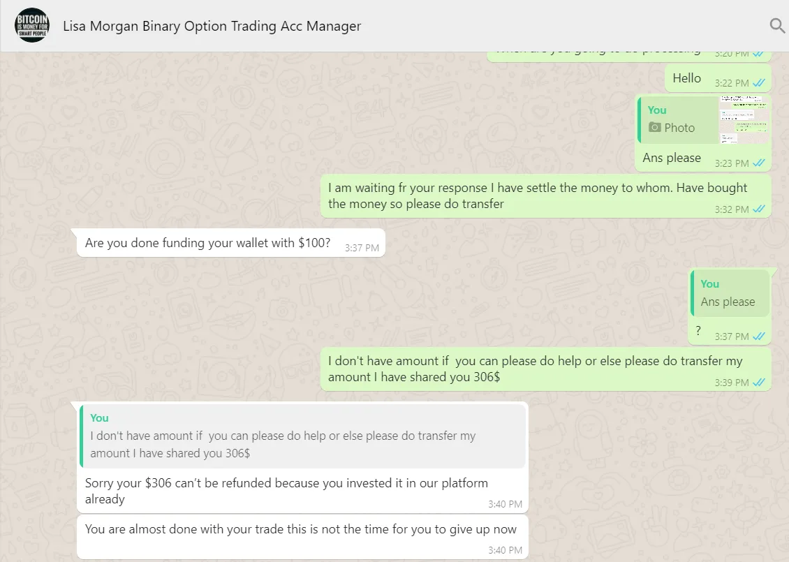 Read full complaintLisa Morgan /Cryptomill.online - She has cheated me - $310l