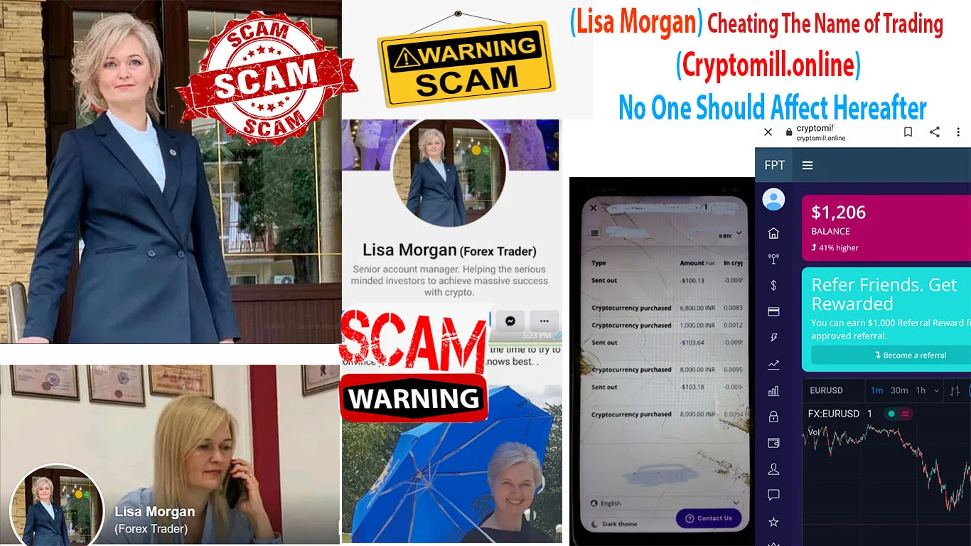 Dear Sir, Madam, Lisa Morgan (she has cheated me - $310) The Name of Trading (www.Cryptomill.online) I am Raja and I am from India. I am here for to raise complaint against Mrs. Lisa Morgan, she swindled me, and She has swindled countless people in her lifetime the name of Cryptomill.online she Grew up in Toronto, Texas and now she moved to Los Angele...